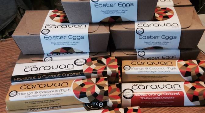 This month it’s Coco Caravan chocolate, made in Llandaff by Jaques. Handmade, organic, vegan, raw chocolate. And it’s damned tasty! And get this – throughout March, 10 per cent ALL sales from Coco Caravan will go to the Welsh Refugee Council!