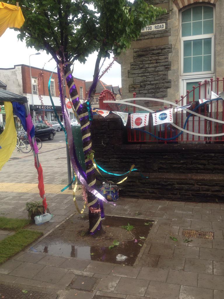 The whole street had put real effort into the aesthetic content, but the stall-holders and fellow browsers were what brought the event to life. Through the medium of artistic creativity, the day appealed to everyone – young or old, native Cardiffian to newbie student. For example, there were super-cool easels to throw paint over (seriously, every street should boast one of these); purple sparkly trees (ok, human interaction may have played a role in making them so glittery); Roath Local History Society informing us through maps and books of the area’s heritage; a Hangover Tent, which I partially made my own despite having only drank Victorian lemonade the previous night, mainly because it was a private solace in which to inhale my very messy (but very good) falafel burger.