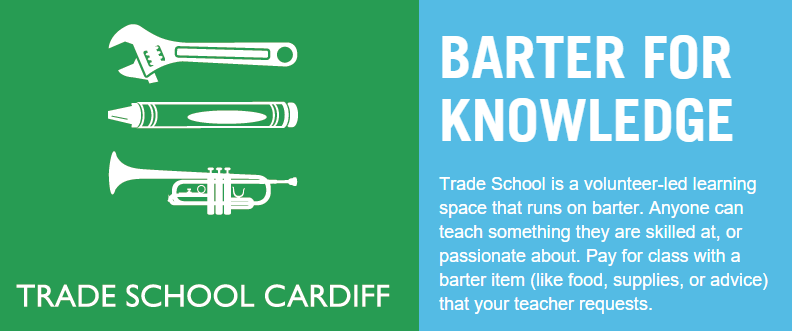 There are confirmed dates and time slots added to the Trade School Cardiff website, so you can start booking yourself in to teach! Just fill in the form and one of the team will get back to you. More info is on this Teacher Info page.