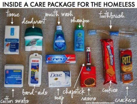 Maybe get some inspiration from this homeless care package: