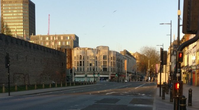 On returning, my relationship with the city changed, and continues to change, as I’m now able to compare it fairly with other European capitals. But also I’m now able to see the city centre “as it is”, without shoppers, tourists, coffee shop flâneurs. The lockdown has dissolved the flesh, tendons, arteries and organs. All that’s left are the bones; the empty streets, closed shops, and those that call the centre “home”. And among those bones two things have become very apparent to me.