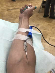 I also give blood for the first time, which is one of the most insane things I have ever done. I ask if I can touch the bag before they ferry it off. IT IS STILL WARM, and it is a complete trip for me. I’ve been there for ten minutes, they’ve extracted a pint of blood out of me, given me some biscuits, and I’m essentially totally back to normal.