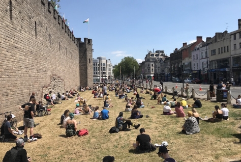 I live in Riverside, and running through Bute Park most days given me the chance to watch Cardiff respond to the pandemic. In early March, before the lockdown began, people were visibly making the most of the park in the cold weather. We had been told to avoid indoor public spaces, and families responded by having unseasonable picnics – wrapped up against the chill wind as though dressed for a ski-trip, in coats, hats and sunglasses. Young men socially-distanced together, drinking wine in camping chairs positioned 2 metres apart along the river.
