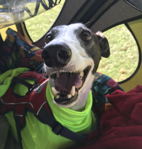 Also, I have to mention my doggy, Zelda. She’s a disabled greyhound. (She broke her back a while ago, it was a whole thing). She’s old and a bit knackered but she still gets around. Look at that smile. I love her.
