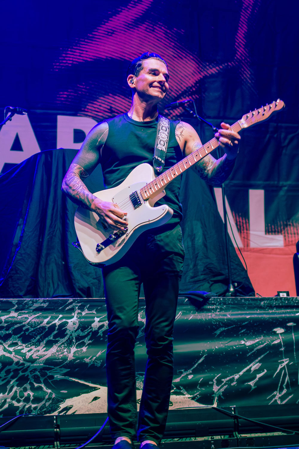 Just over 2 hours after doors officially opened, the main show started, Funeral For A Friend were greeted by loud screams from their hometown Welsh fans. They opened with Rookie of the Year and continued into Bullet Theory. Lead singer Matthew Davies-Kreye was lucky enough to celebrate his birthday on home turf during their Cardiff show. Fans were jumping, pits were opened and the band’s 20th anniversary tour was celebrated in style at the Utilita Arena in Cardiff.
