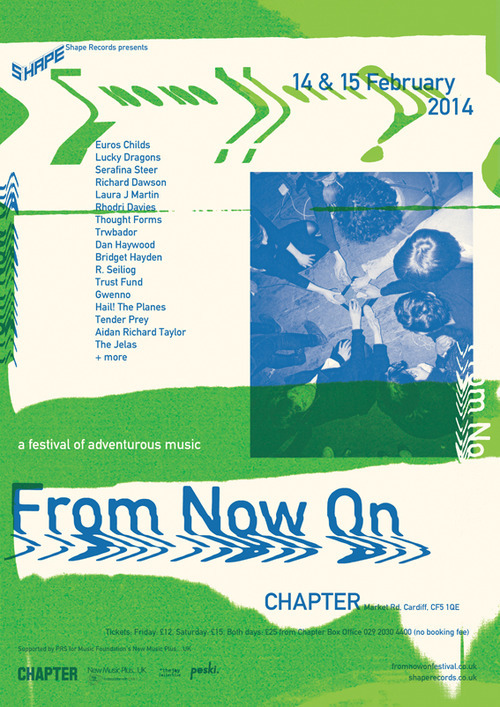 Gah! Is it just me or is this week dragging ON forever? Anyway, for those music lovers who are looking for something to do this weekend, the We Are Cardiff flag will be flying (and by that I mean I’ll be drunk and draped over the speakers) at Chapter Arts Centre on Friday and Saturday for From Now On festival. It’s been put together by Mark of Shape Records, and is a new festival of adventurous and experimental music.