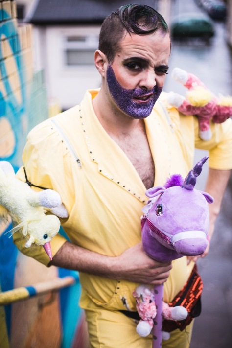 He grew from there really, he’s a bit like me in that he likes to keep his fingers in lots of pies! He’s obviously a regular at Sparkles Hoop Troupe and he compere’s Scratch This, he also has his boylesque routines. Last year Ernie and I created a ‘one man show’ for Made in Roath called ‘The Fabulous Unicorn Inquiry’ and it was a show exploring fabulous and whether it was a phenomenon limited to only unicorns. It was weird putting him and me on stage together but good fun!